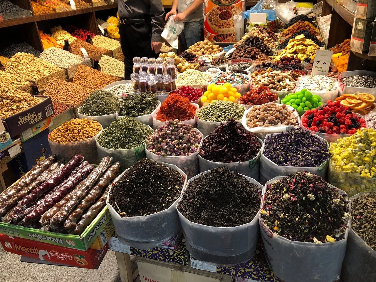 这里可以买到干果、坚果、自制果酱、香料和蜂蜜。冬季,空气中弥漫着柑橘和杏干的香气;夏季,摊位上堆满了桃子、无花果和樱桃。